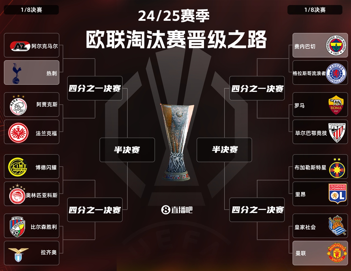歐聯(lián)1/8決賽對陣:曼聯(lián)vs皇社 熱刺vs阿爾克馬爾 費內(nèi)巴切vs流浪者