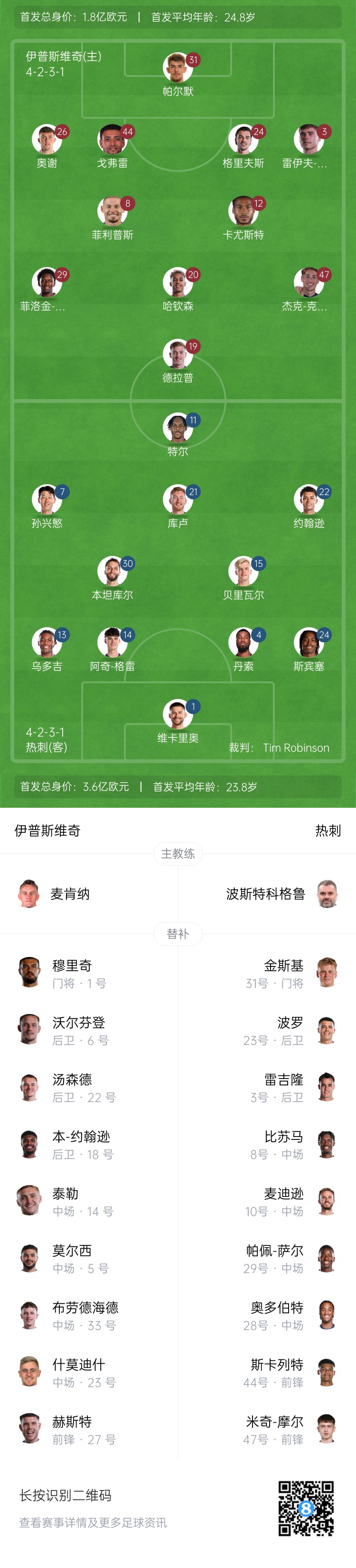 賽前熱刺25輪30分排名第12位,伊普斯維奇25輪17分排名第18位,落后保級區(qū)2分。