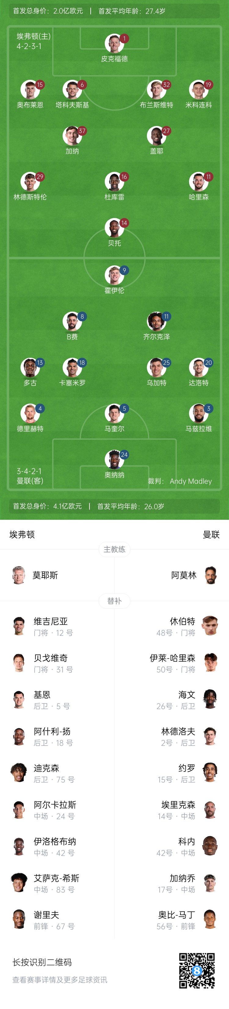 埃弗頓首發(fā):1-皮克福德、15-奧布萊恩、6-塔科夫斯基、32-布蘭斯維特、19-米科連科、27-蓋耶、37-詹姆斯-加納、16-杜庫雷、29-林德斯特倫、11-杰克-哈里森、14-貝托