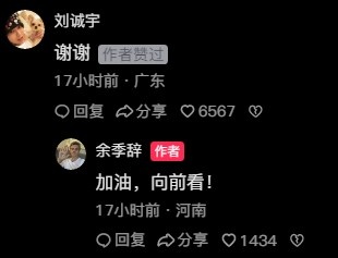 U20亞洲杯1/4決賽國(guó)青遺憾失利后,此役錯(cuò)失點(diǎn)球以及近距離絕佳良機(jī)的劉誠(chéng)宇,成為了輿論當(dāng)中一些負(fù)面情緒攻擊的焦點(diǎn)。對(duì)此,一位網(wǎng)名“余季辭”的球迷在社媒發(fā)表長(zhǎng)文安慰了劉誠(chéng)宇,并向他送上了鼓勵(lì),劉誠(chéng)宇本人也在評(píng)論區(qū)留言“謝謝”。