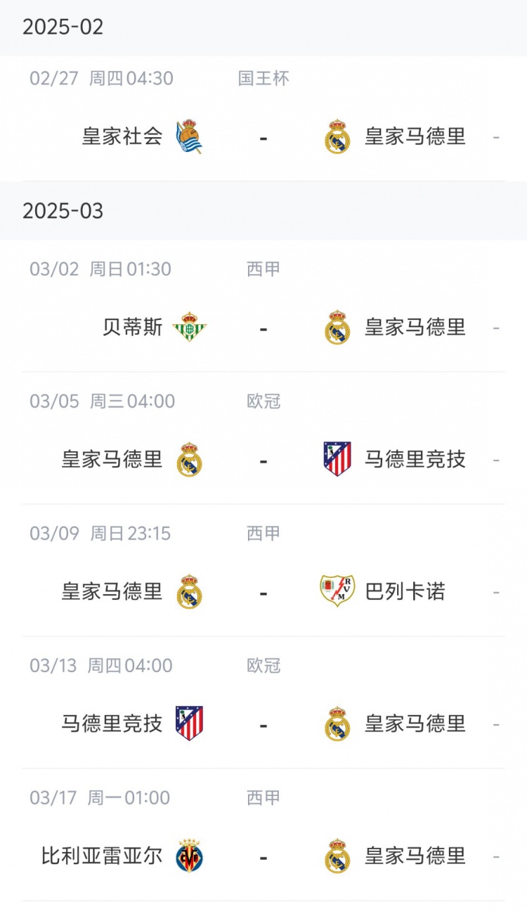 皇馬則同樣面臨緊張的賽程,六場比賽僅兩場在伯納烏進行,需要客場挑戰(zhàn)皇家社會、貝蒂斯和比利亞雷亞爾,同時還要應對歐冠對陣馬競的比賽。