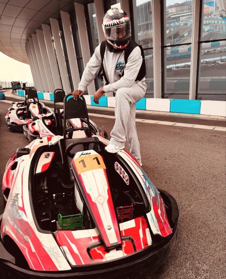 照片中,戴著頭盔的小奧斯卡以各種pose與賽車合影,看上去心情非常不錯。