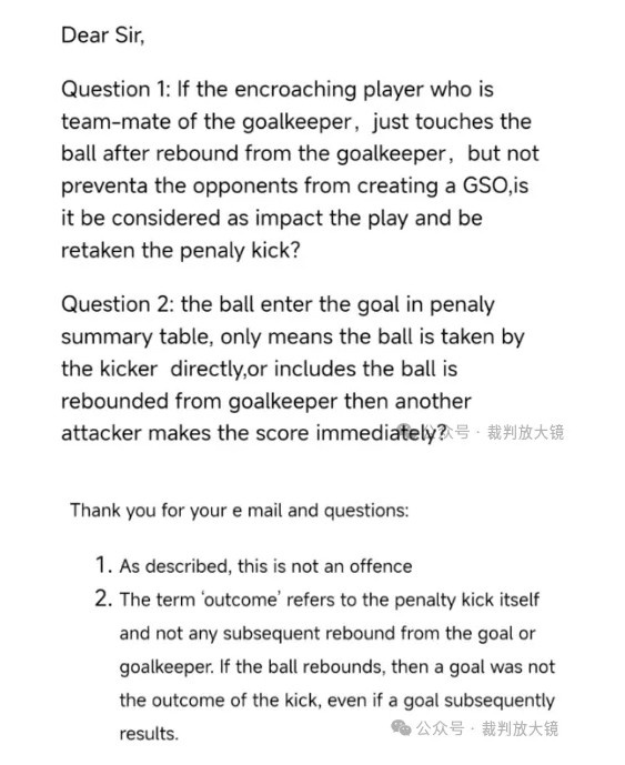 針對上述情況,也有老師咨詢了IFAB,給出的答案,大家可以參考。