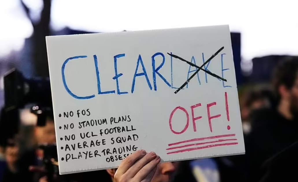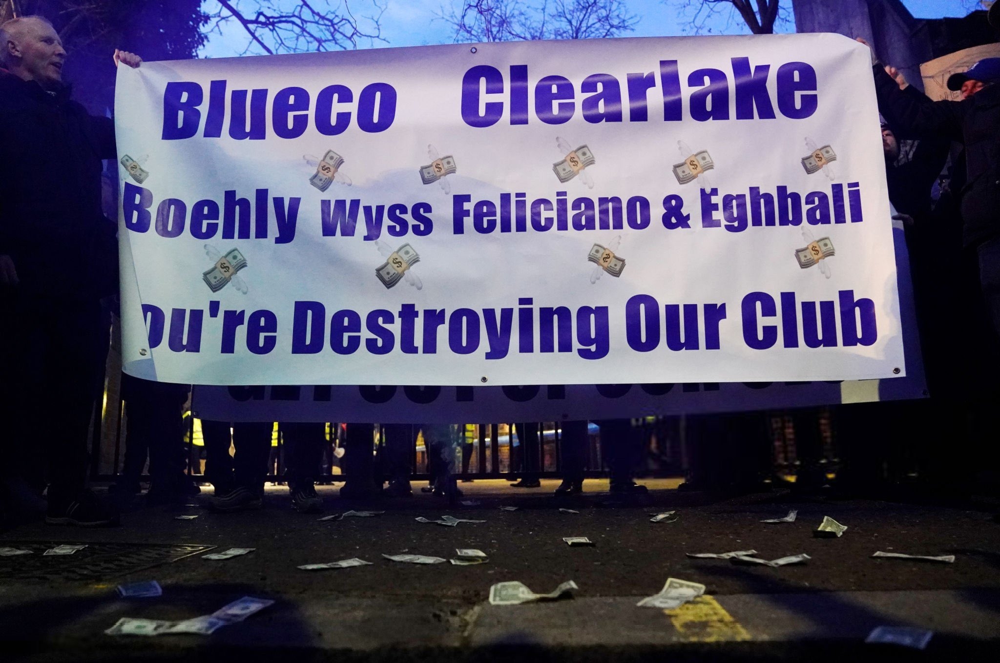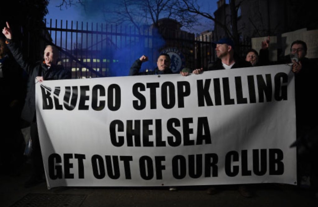 在比賽開始前,數(shù)百名切爾西球迷在斯坦福橋場(chǎng)外舉行了抗議活動(dòng),對(duì)切爾西老板伯利和清湖資本。