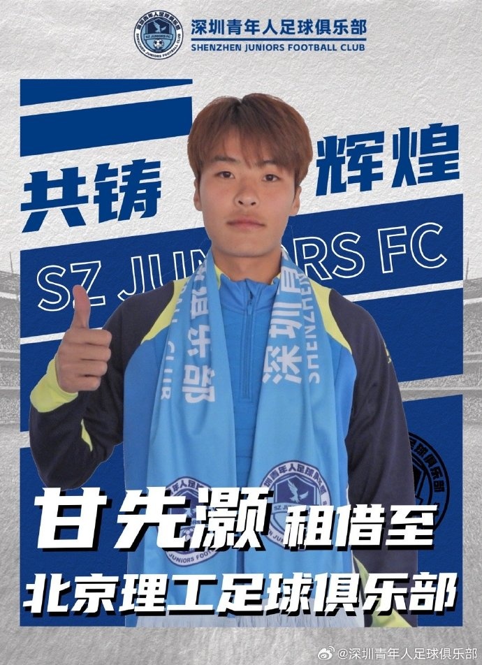 2月26日訊 深圳青年人官方宣布,王佳坤、甘先灝以租借形式加盟北京理工足球俱樂(lè)部。