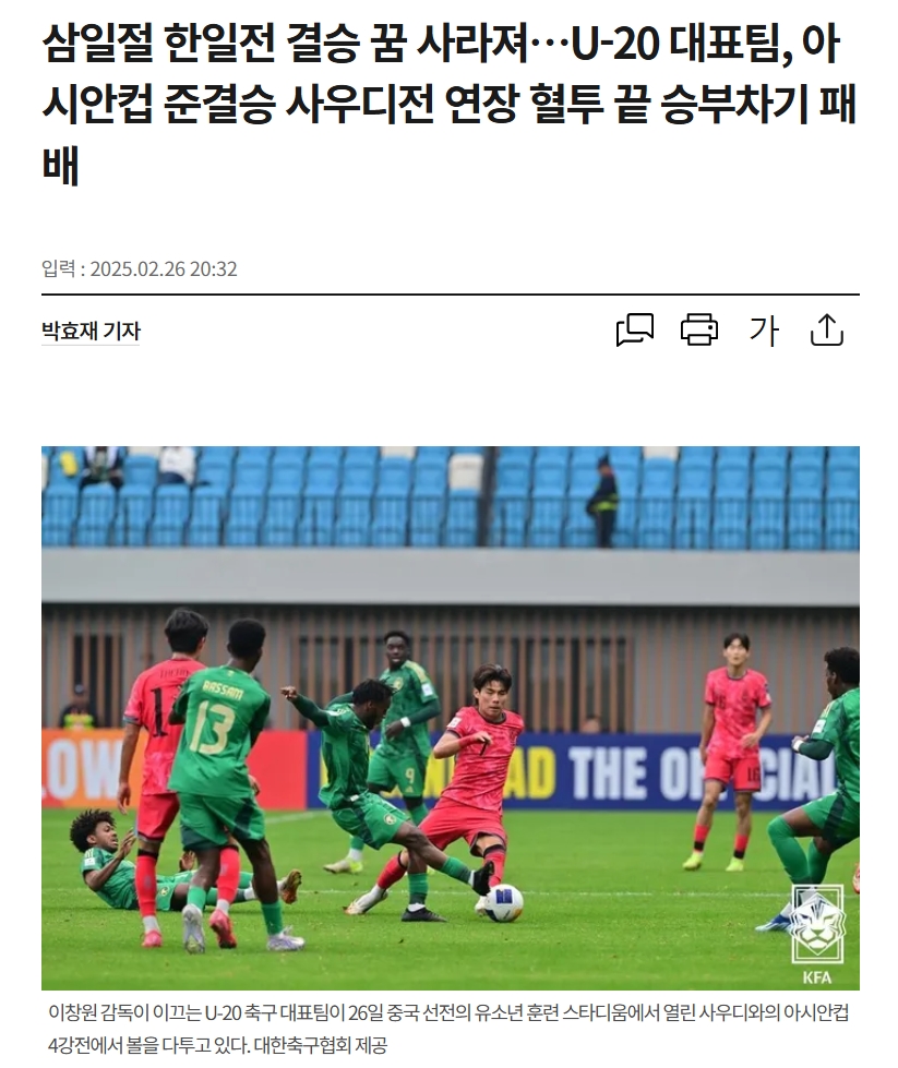 韓國(guó)U-20未能重奪亞洲霸主地位……點(diǎn)球大戰(zhàn)負(fù)于沙特阿拉伯