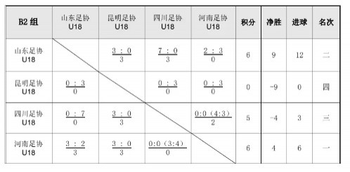 小組賽最后一輪,由于對(duì)手昆明足協(xié)U18隊(duì)棄權(quán),河南隊(duì)?wèi){借對(duì)陣山東的勝負(fù)關(guān)系優(yōu)勢(shì),力壓對(duì)手以小組頭名的成績(jī)進(jìn)入到了接下來(lái)的排位賽。