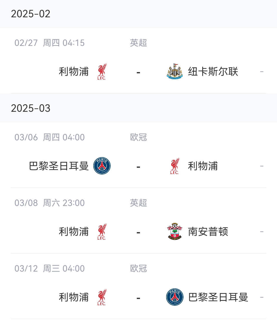 利物浦賽程