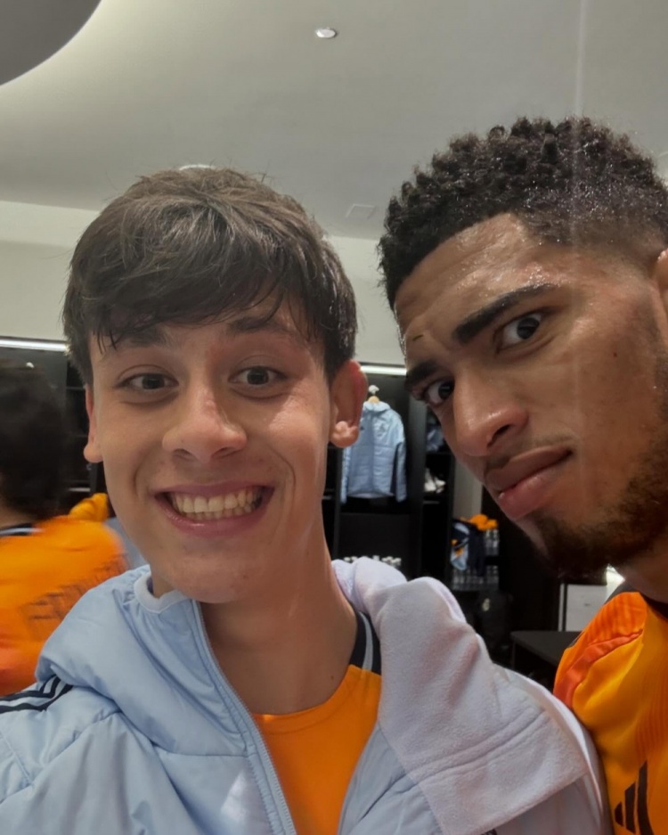 卡馬文加曬出自己與維尼修斯的合照并寫道:“和隊長維尼修斯(后面還有莫德里奇、巴斯克斯、塞巴略斯和巴爾韋德)以及攝影師的照片????”