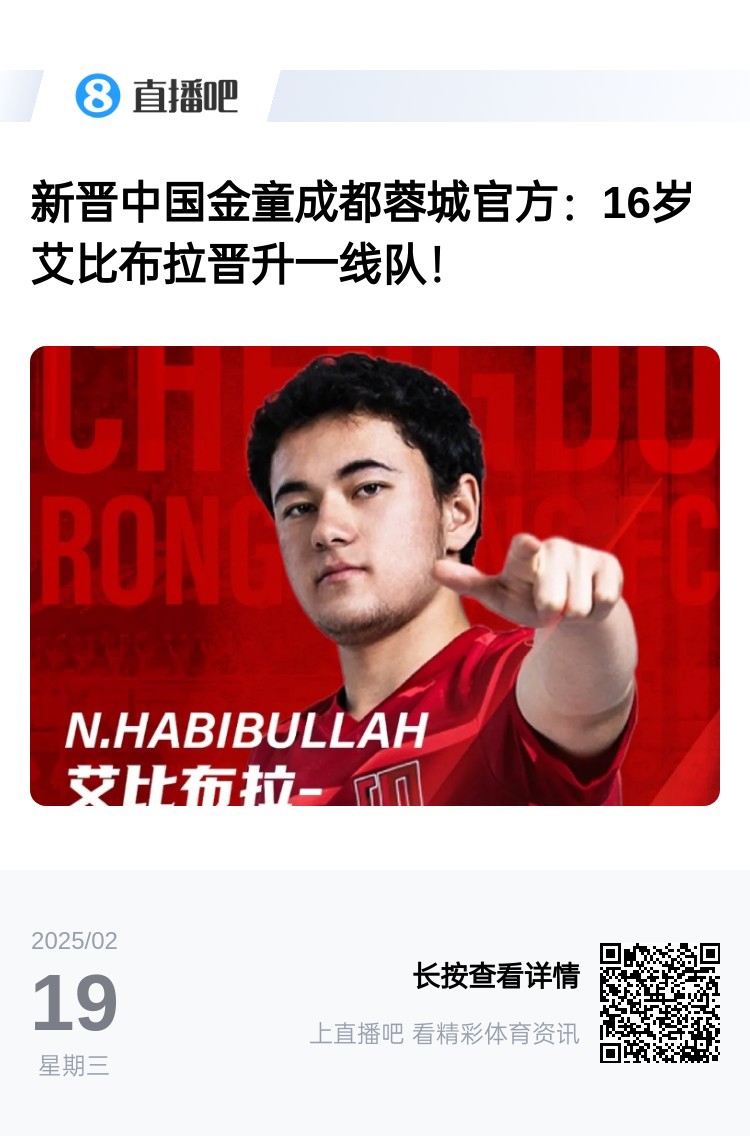 U17國足陣中,艾比布拉同樣被提拔至成都蓉城一線隊(duì),今晚蓉城對陣津門虎,16歲的艾比布拉能否上演中超首秀?