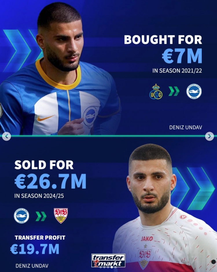 3月3日訊 《轉(zhuǎn)會(huì)市場(chǎng)》統(tǒng)計(jì)了布萊頓近年的5筆低買(mǎi)高賣(mài)轉(zhuǎn)會(huì)操作,共計(jì)凈賺超過(guò)2億歐元。