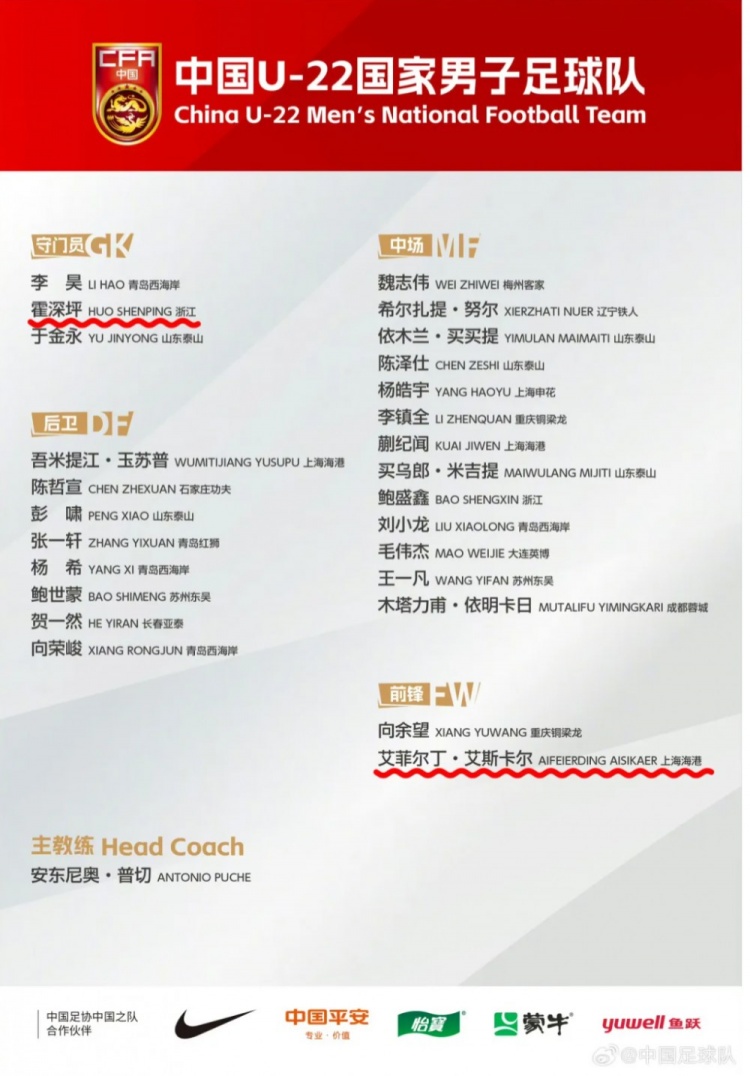 3月3日,中國足協(xié)公布U22國足2025年第一期集訓(xùn)名單,恒大足校培養(yǎng)球員霍深坪、艾菲爾丁入選。為備戰(zhàn)2026年U23亞洲杯及名古屋亞運會,隊伍定于2025年3月5日至26日赴江蘇省蘇州市、鹽城市組織集訓(xùn)并參加國際足球邀請賽。