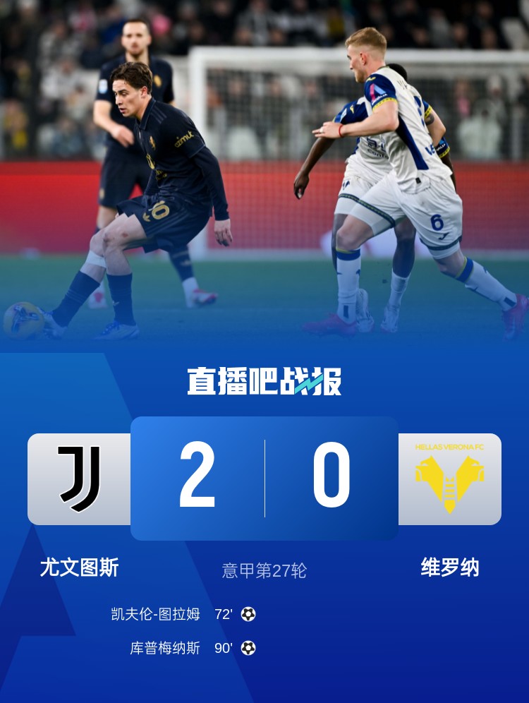 圖拉姆破門,尤文2-0戰(zhàn)勝維羅納,取得意甲5連勝,積分榜上仍居第4名。