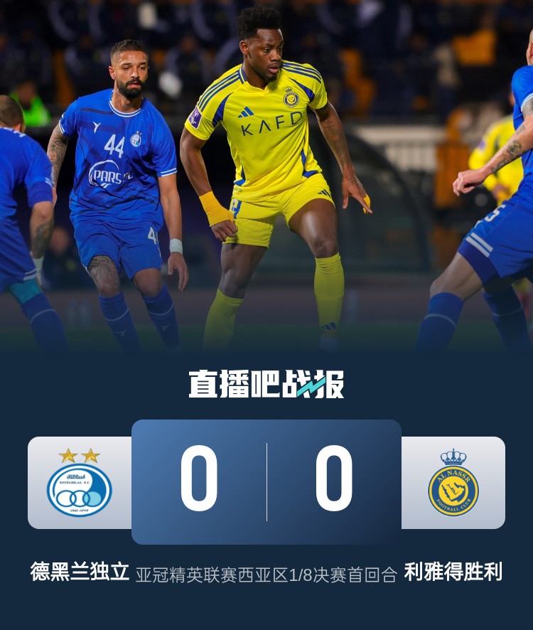 杜蘭屢失良機(jī)、C羅缺陣,利雅得勝利客場(chǎng)0-0戰(zhàn)平德黑蘭獨(dú)立。