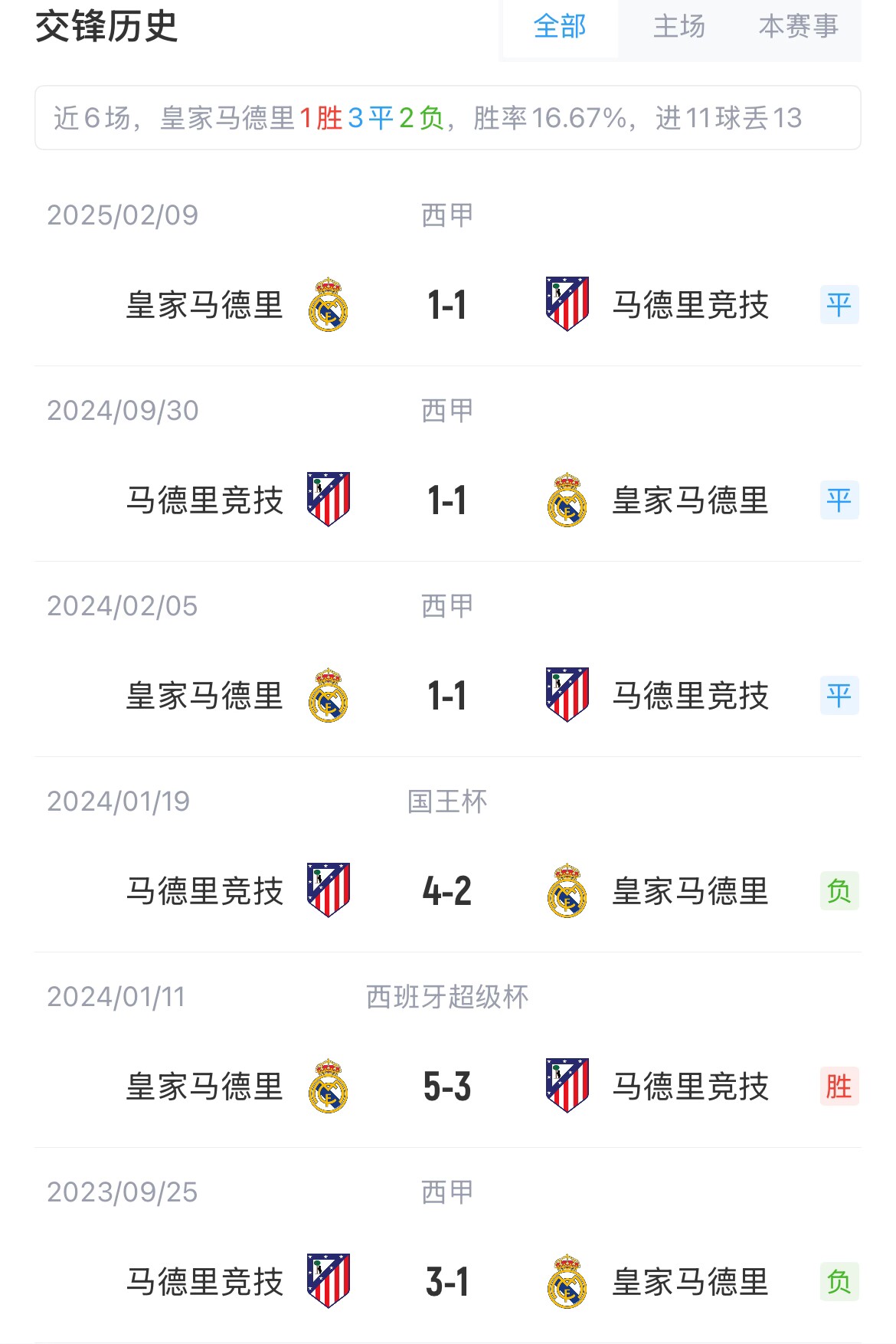 皇馬與馬競(jìng)在歐戰(zhàn)共交手10次,皇馬5勝2平3負(fù),其中兩次在歐冠決賽戰(zhàn)勝馬競(jìng)。本賽季,兩隊(duì)在西甲的兩次對(duì)決均戰(zhàn)成1-1。
