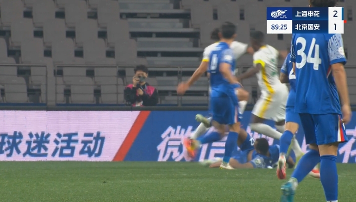 【判例一】:中超聯(lián)賽第2輪,上海申花VS北京國安,比賽第89分鐘,北京國安9號隊(duì)員在對方罰球區(qū)內(nèi)與上海申花32號隊(duì)員爭搶球后倒地,裁判員未判罰犯規(guī),VAR未介入。