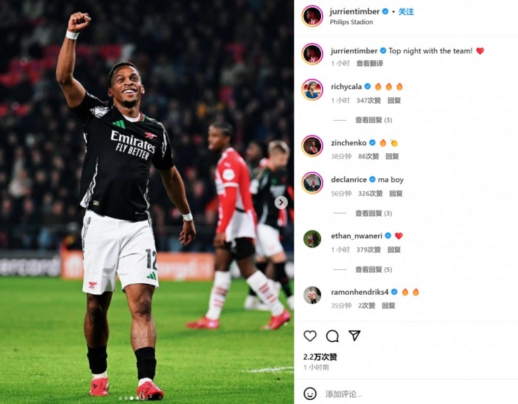 3月5日訊 阿森納在本輪歐冠7-1血洗埃因霍溫,幾位主力也在賽后通過社媒曬照慶祝。