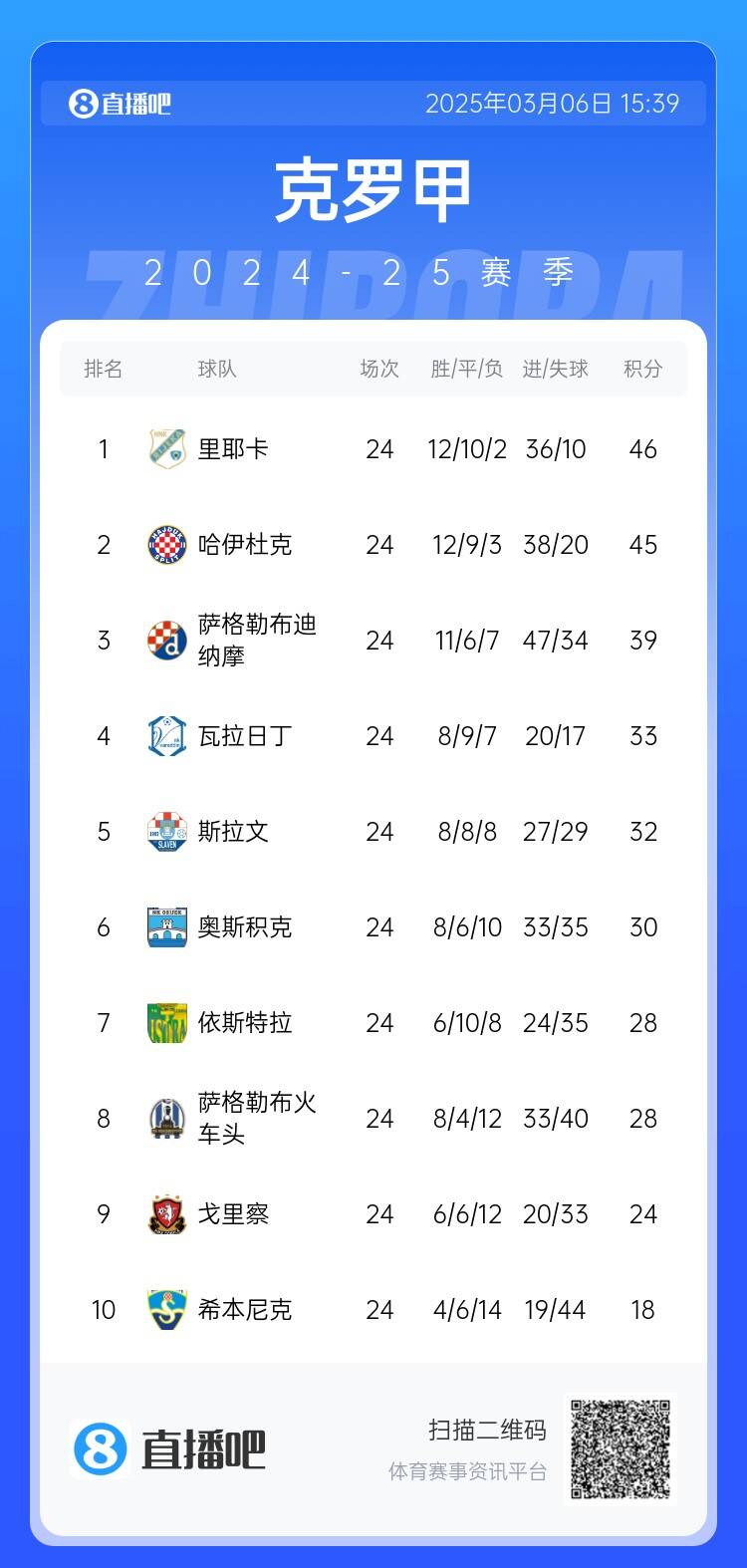克羅地亞甲,法比奧·卡納瓦羅執(zhí)教的薩格勒布迪納摩,主場2-2戰(zhàn)平加圖索執(zhí)教的斯普利特哈伊杜克,兩隊(duì)繼續(xù)分列第三和第二。1分對(duì)于兩隊(duì)來說都不滿意,好在榜首的里耶卡也戰(zhàn)平,否則斯普利特海杜克和里耶卡的分差將被拉大。