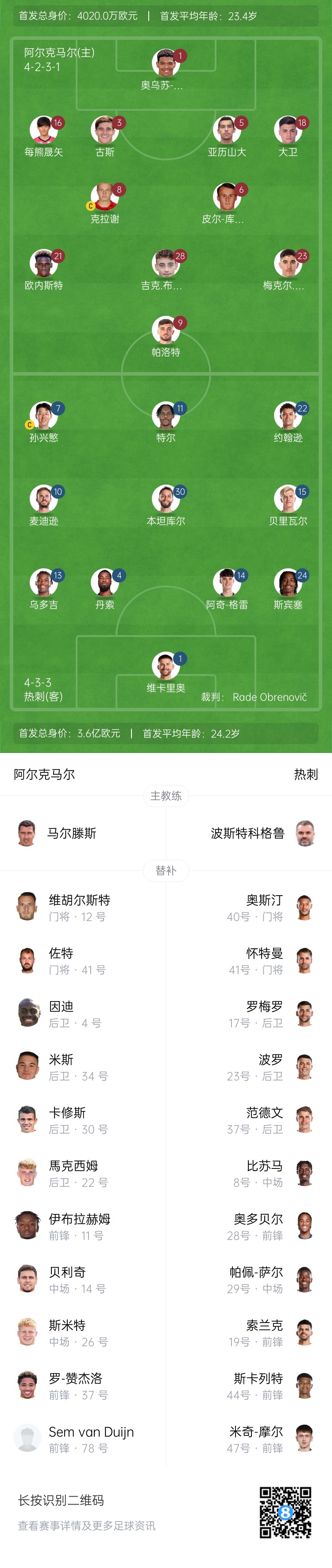 3月7日訊 歐聯(lián)杯16強(qiáng)首回合,阿爾克馬爾主場(chǎng)迎戰(zhàn)熱刺比賽即將打響。賽前首發(fā)出爐。