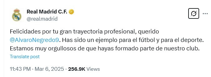 皇馬官方祝福道:“祝賀內(nèi)格雷多有著偉大的職業(yè)生涯,你是足壇和體壇的榜樣。我們?yōu)槟阍俏覀兙銟凡康囊粏T感到非常的自豪。”