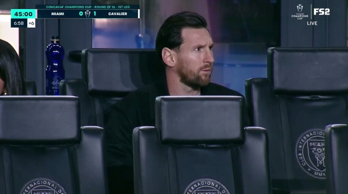 在上半場補(bǔ)時階段,客隊(duì)球員阿特金森破門,但是裁判觀看VAR后判定進(jìn)球越位。邁阿密被進(jìn)球時梅西在場邊愁容滿面,VAR檢查時梅西也是坐不住了站了起來。