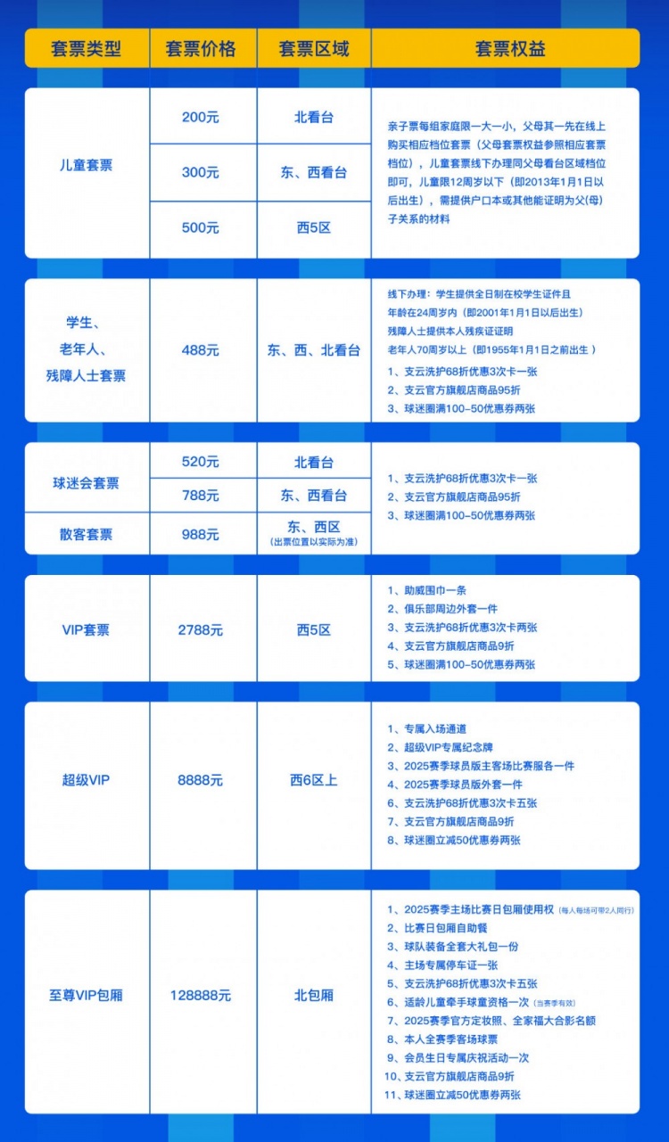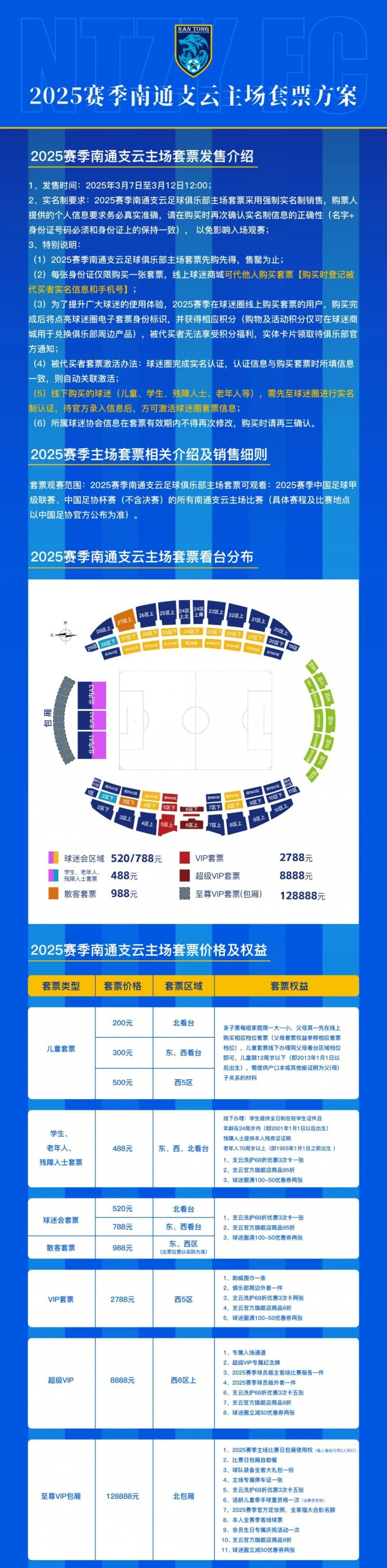 3、2025賽季南通支云主場套票價(jià)格及權(quán)益如下: