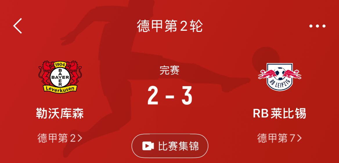 這也是勒沃庫森本賽季德甲的第二場失利,他們的23輪不敗就此終結(jié),上一次藥廠在德甲輸球還要追溯到去年9月初,當時他們主場2-3不敵萊比錫,此后藥廠23輪德甲15勝8平不敗。