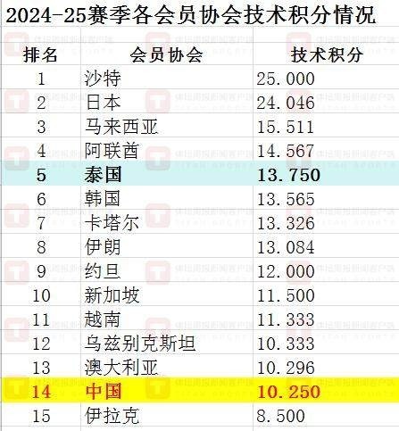 在各隊的技術積分揭曉后再累加,然后除以參賽隊數(shù),得出的平均分數(shù)就是該會員協(xié)會在2024-25賽季的技術積分。