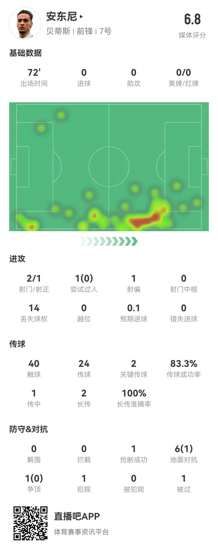 02月03日訊 西甲第22輪,貝蒂斯主場(chǎng)2-2戰(zhàn)平畢爾巴鄂競技,安東尼本場(chǎng)在第15分鐘制造了伊斯科的進(jìn)球,賽后他當(dāng)選全場(chǎng)最佳球員。