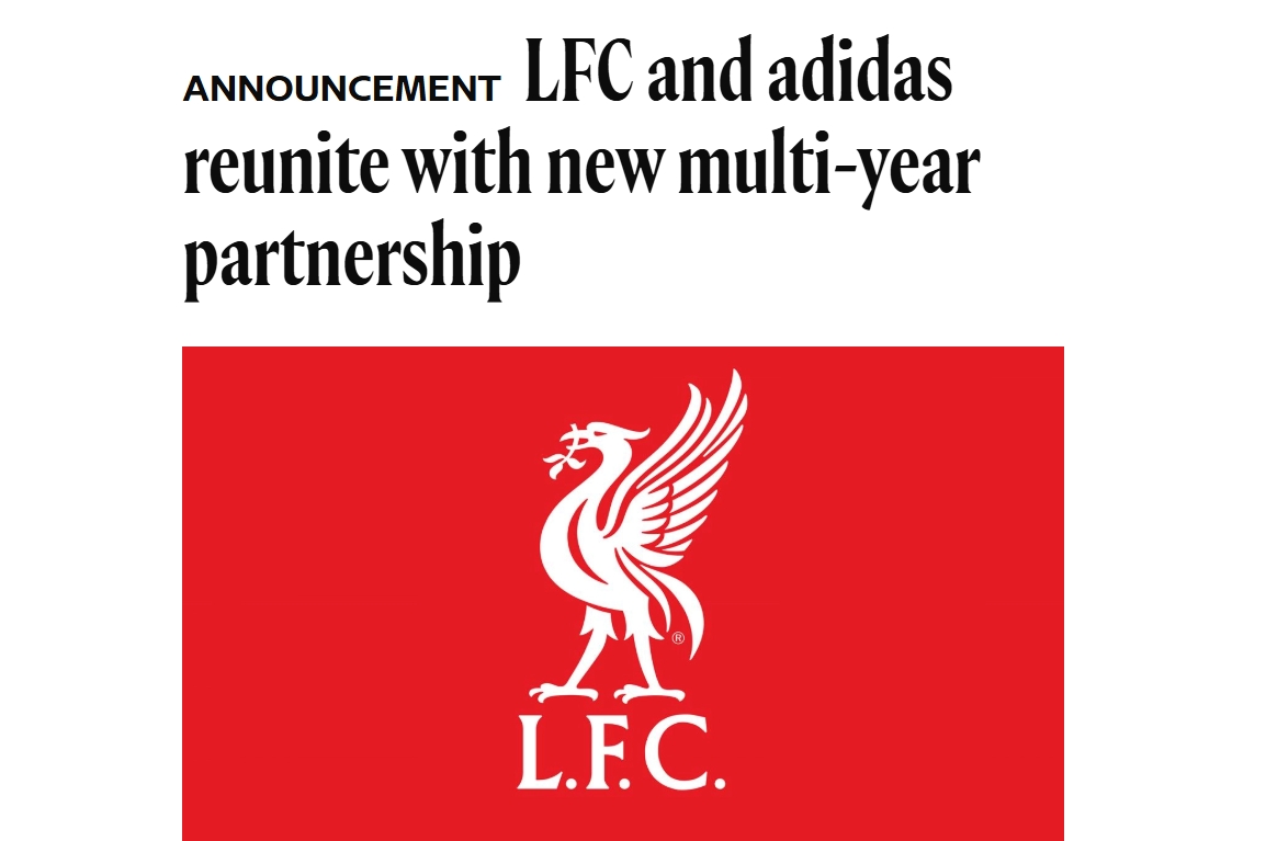 03月10日訊 官方消息,利物浦與阿迪達(dá)斯時隔13年再度攜手,后者成為俱樂部的官方球衣贊助商。利物浦就此結(jié)束了與耐克的五年合作期。