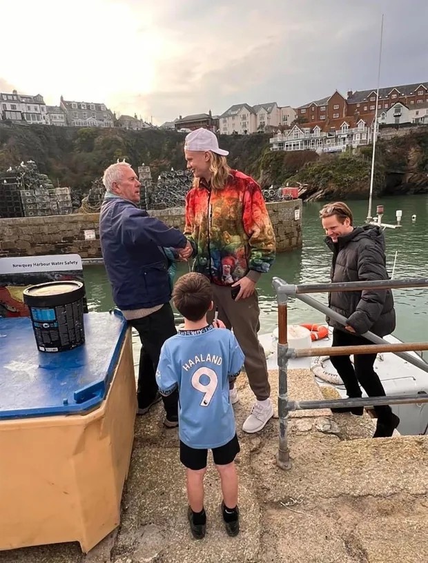 在休息時間,哈蘭德前往距離曼徹斯特家中約315英里的康沃爾紐基進行海釣。盡管哈蘭德沒有在現(xiàn)場逗留太長時間,但他仍抽空與球迷合影,甚至為一位曼城球迷在球衣上簽名。
