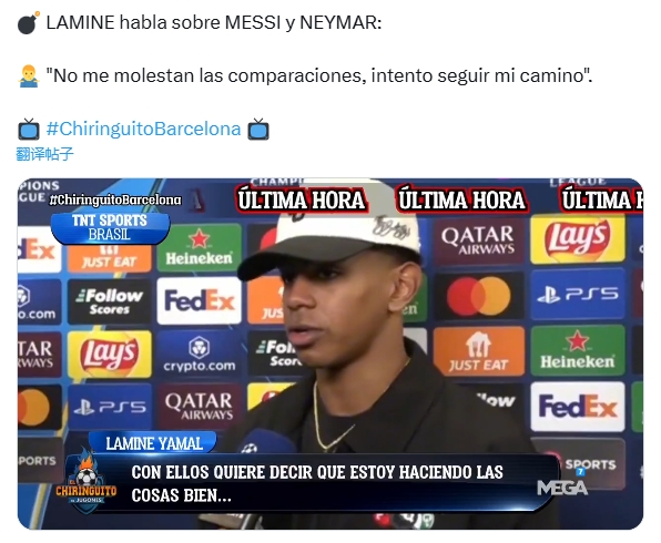 3月12日訊 歐冠1/8決賽次回合,巴薩3-1戰(zhàn)勝本菲卡,總比分4-1晉級(jí)。賽后在接受采訪時(shí),亞馬爾被問(wèn)到自己和梅西、內(nèi)馬爾的對(duì)比一事。