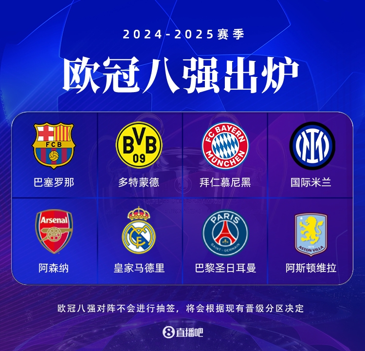 ??歐冠8強(qiáng)對陣:槍手vs皇馬|拜仁vs國米|巴薩vs多特|巴黎vs維拉