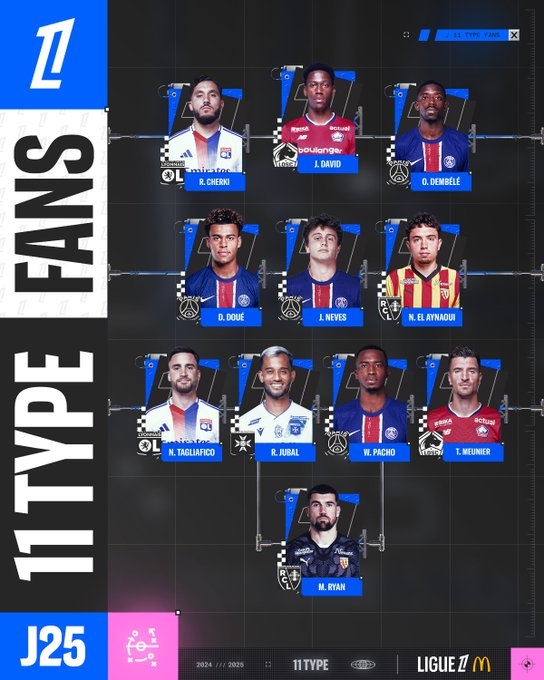 3月13日訊 法甲官方公布了本輪法甲最佳陣,登貝萊、內(nèi)維斯、杜埃和帕喬入選。