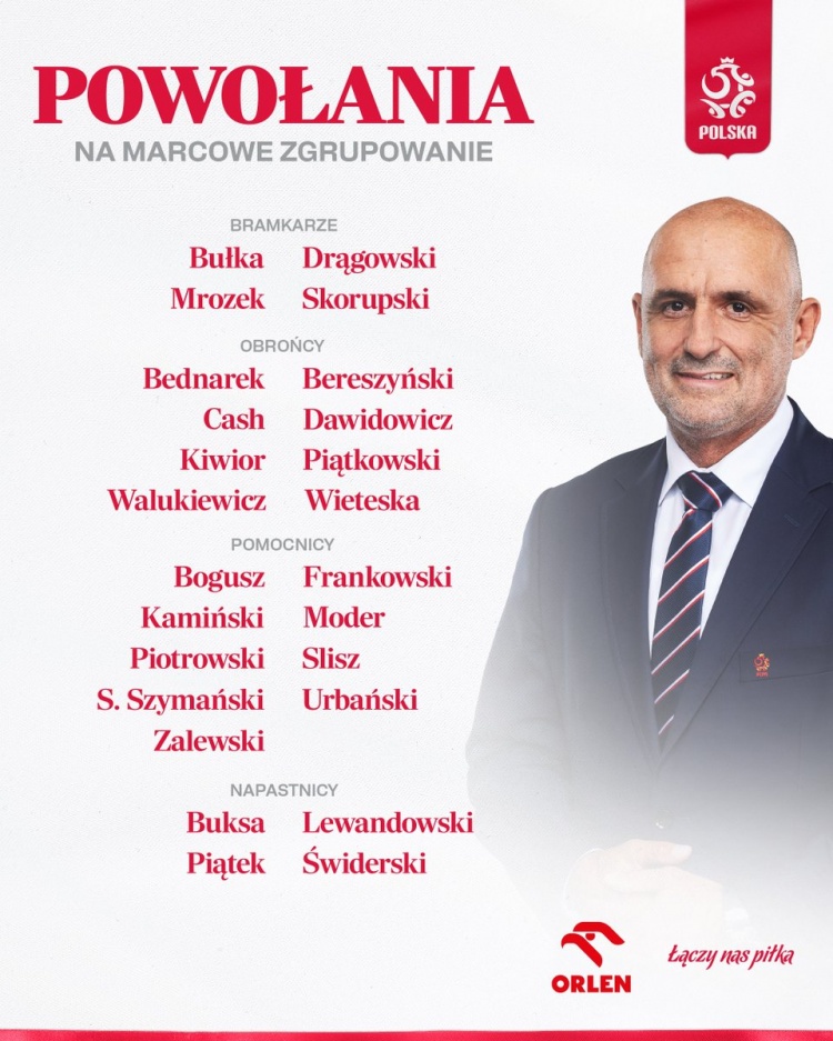 3月14日訊 波蘭最新一期國家隊(duì)名單公布,萊萬多夫斯基領(lǐng)銜,扎萊夫斯基、基維奧爾、皮亞特克在列。