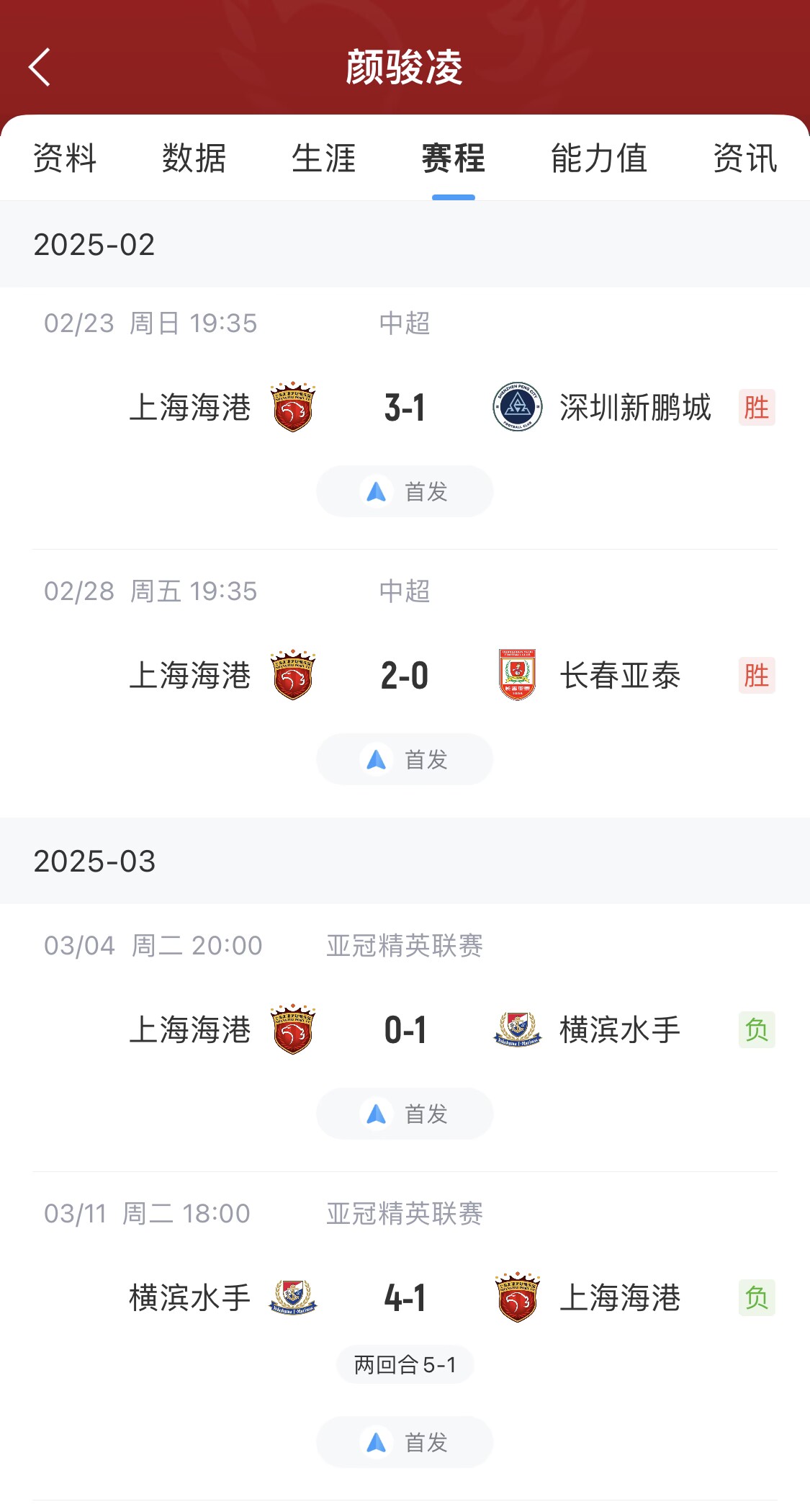但2025賽季中超首輪泰山vs河南,王大雷出擊踢倒對手染紅,2月23日之后未參加正式比賽。而顏駿凌出戰(zhàn)了中超+亞冠的所有比賽。
