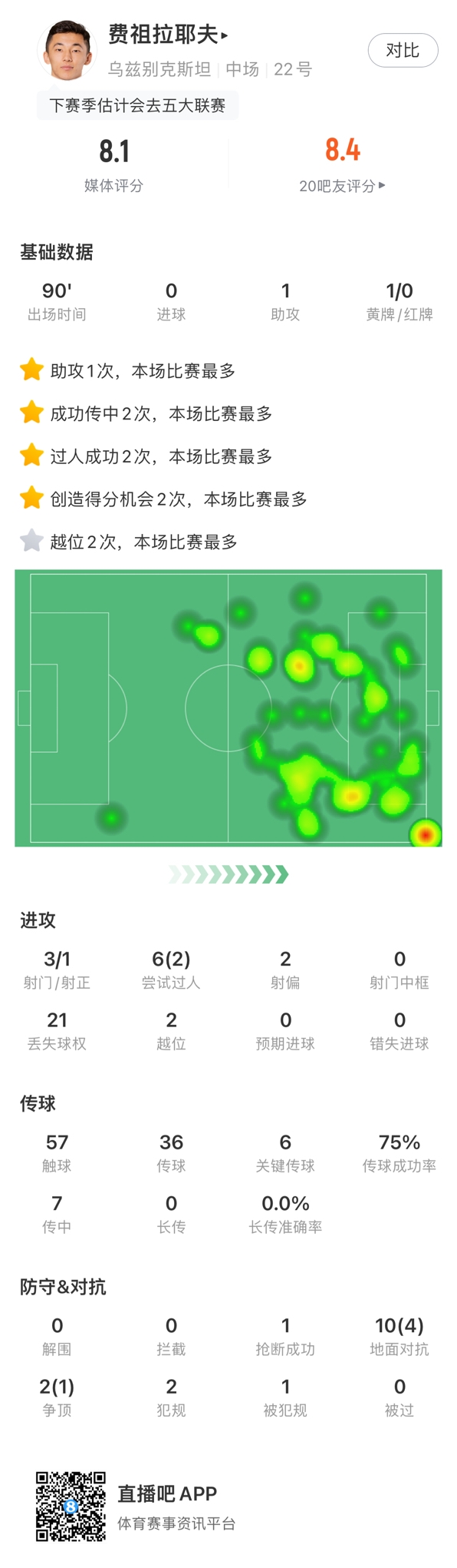烏茲別克斯坦1-0吉爾吉斯斯坦,距離世界杯越來(lái)越近,21歲中場(chǎng)費(fèi)祖拉耶夫1v6挑傳助攻。
