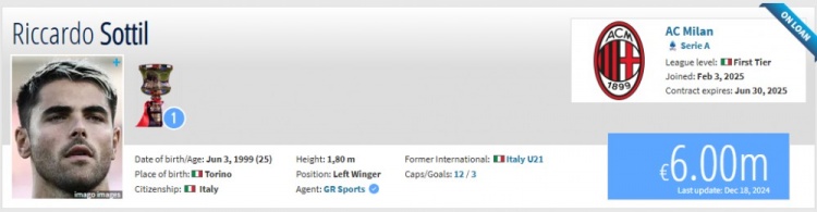 現(xiàn)在,兩名球員的德轉(zhuǎn)頁面所屬球隊(duì)都已經(jīng)改為AC米蘭。