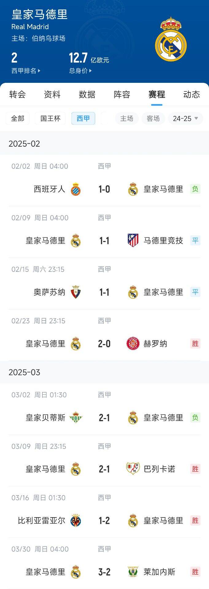 皇馬:8輪4勝(近期3連勝)