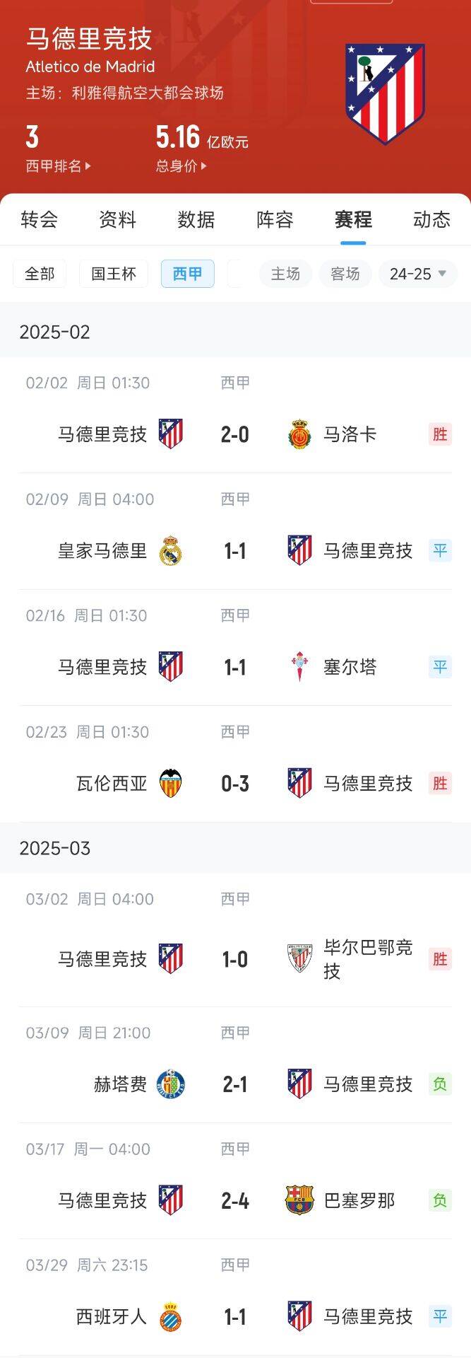 西甲爭冠沖刺階段三強的狀態(tài)一覽: