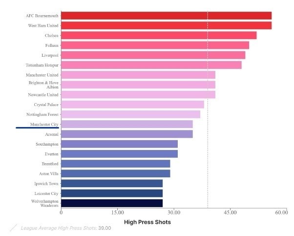 哈蘭德加盟之后,曼城的高位壓迫效率已經(jīng)跌至聯(lián)盟中游,隨著京多安和德布勞內(nèi)的老化,球隊(duì)的傳控能力又出現(xiàn)了明顯下降,瓜迪奧拉的球隊(duì)失去了賴以成名的殺招。