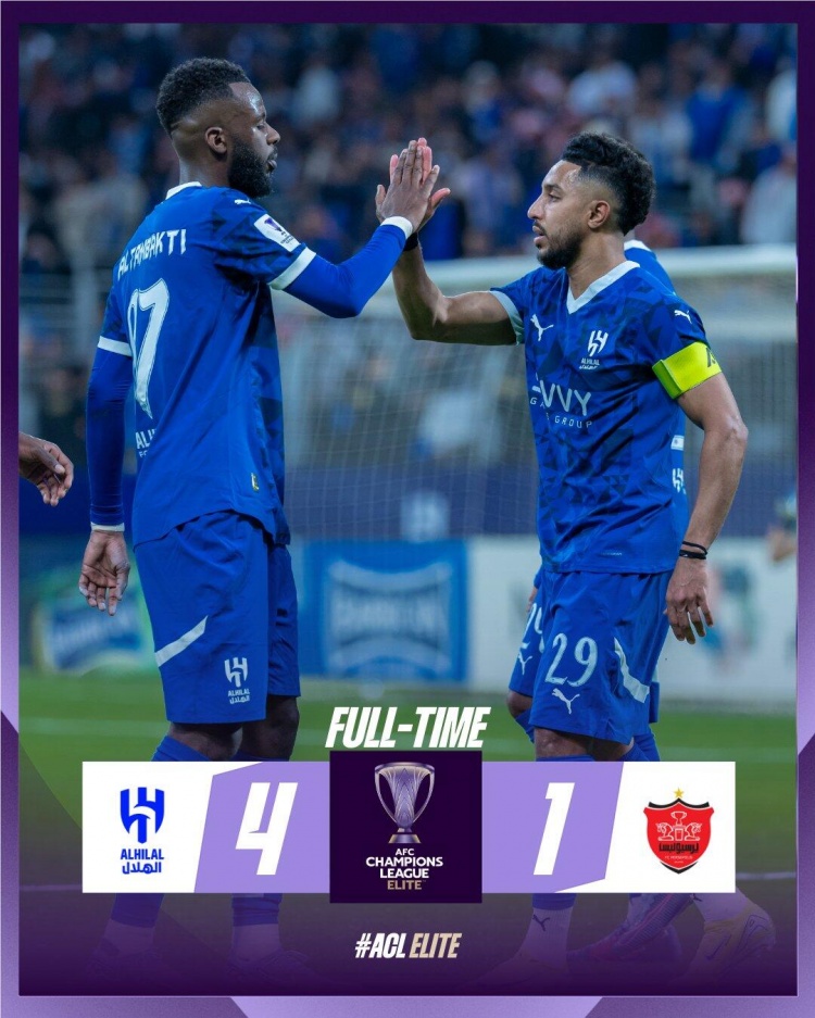 亞冠精英聯(lián)賽西亞區(qū)第7輪,利雅得新月4-1擊敗波斯波利斯。上半場,馬爾科姆超級一條龍破門,坎塞洛擴大優(yōu)勢,多薩里連進兩球。下半場,布萊希送點,格維勒西亞尼點射扳回一球。