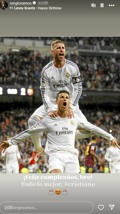 拉莫斯更新社媒動態(tài),分別祝賀前隊友內(nèi)馬爾和C羅生日快樂