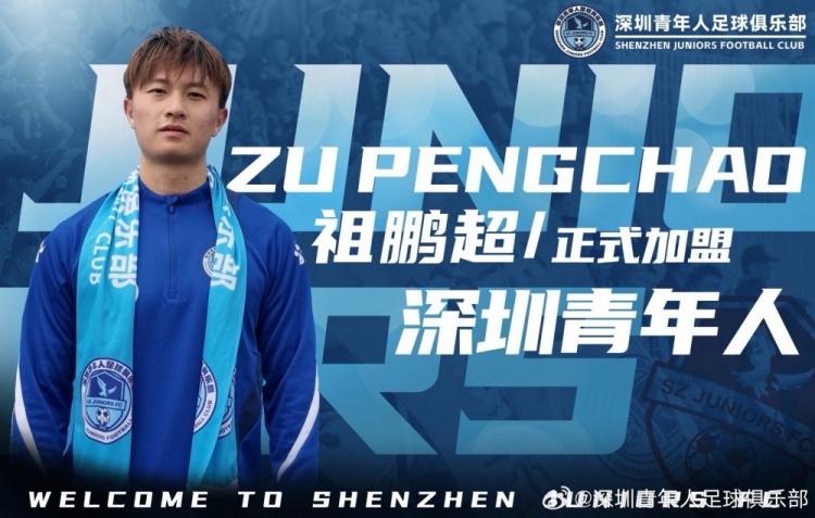 經(jīng)與球員本人友好協(xié)商并達(dá)成一致,祖鵬超正式加盟深圳青年人足球俱樂部。