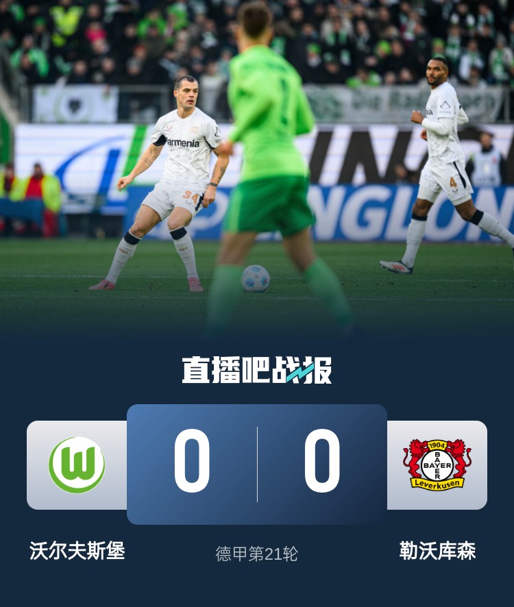 勒沃庫(kù)森本輪0-0戰(zhàn)平沃爾夫斯堡,目前球隊(duì)落后榜首8分。