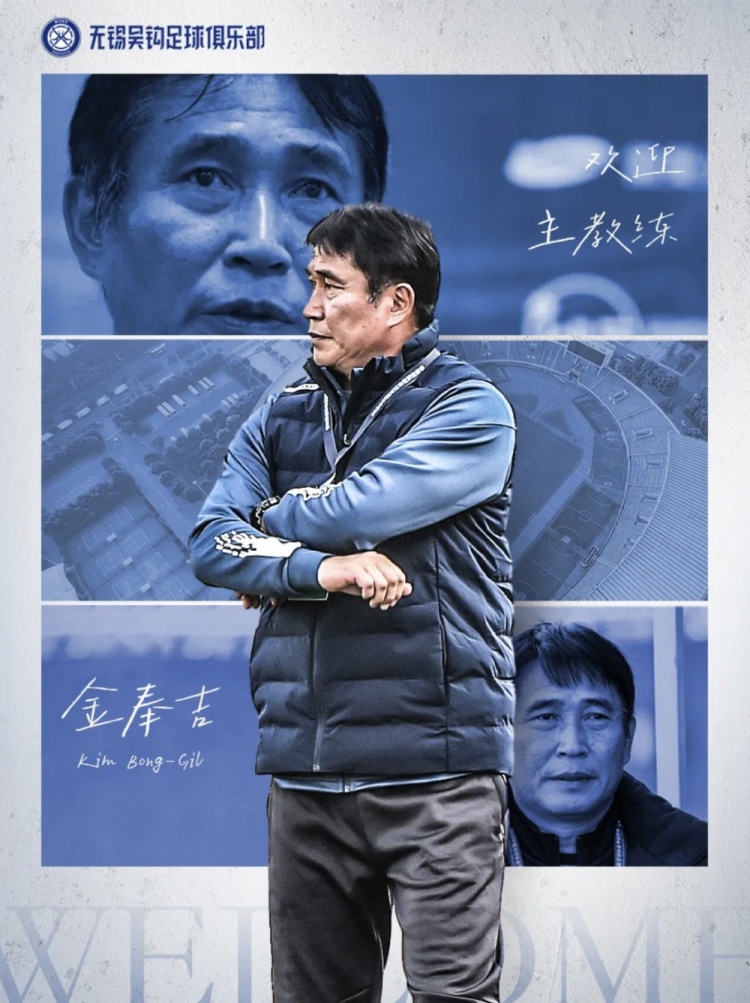 經與本人友好協商一致,即日起,韓國籍教練金奉吉先生出任無錫吳鉤足球俱樂部一線隊主教練。
