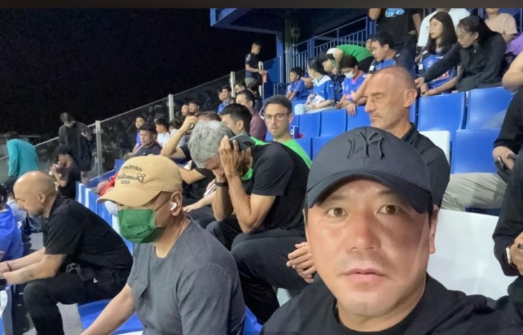 2月10日訊 北京國安目前正在泰國進行冬訓(xùn),今天國安領(lǐng)隊隋東亮?xí)癯隽饲蜿牻叹毥M前往泰超現(xiàn)場觀賽的照片。
