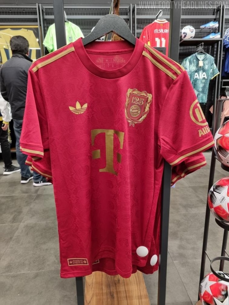 從不久前曝光的拜仁紀(jì)念球衣照片可以看出,這款球衣采用了深紅色主色調(diào)和金色鑲邊裝飾,經(jīng)典三葉草LOGO、印有125字樣并以月桂花環(huán)裝飾的拜仁盾式隊徽分列胸前。