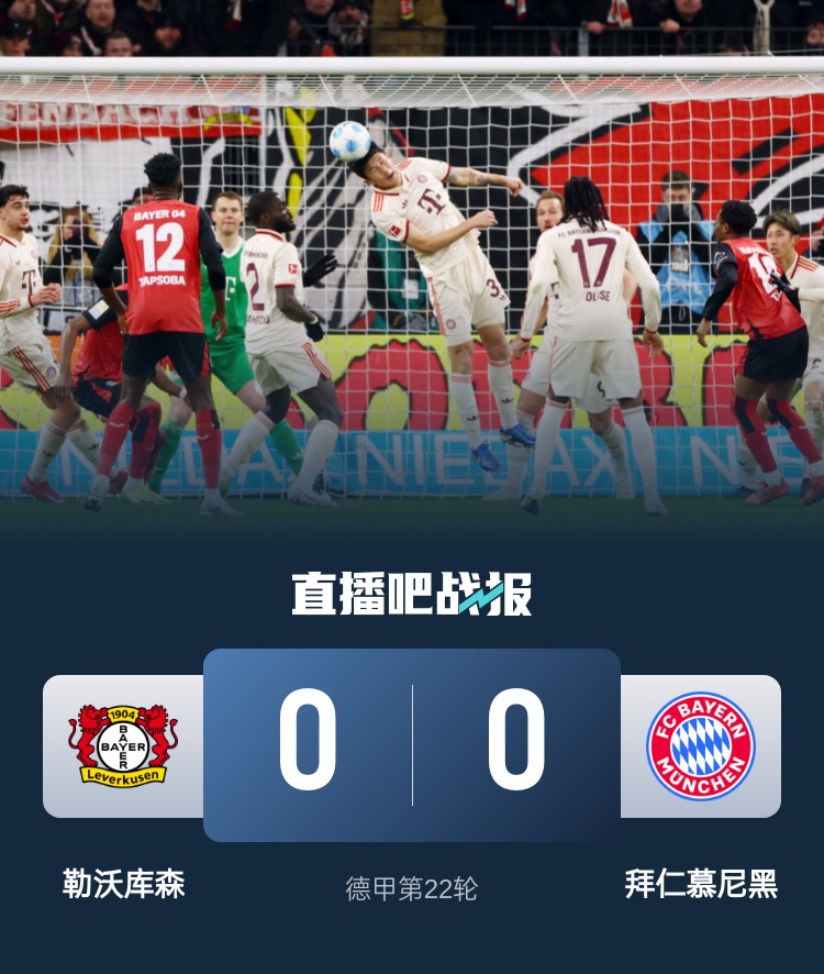 德甲本輪焦點(diǎn)大戰(zhàn),勒沃庫(kù)森0-0戰(zhàn)平拜仁。拜仁7連勝遭終結(jié),8分領(lǐng)跑聯(lián)賽。
